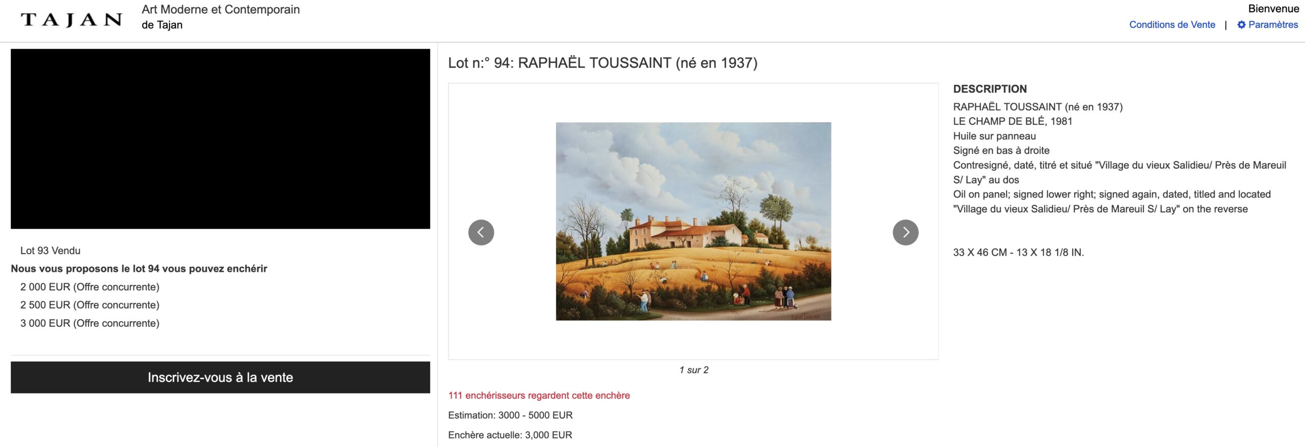 Œuvres de Raphaël Toussaint vendues aux enchères