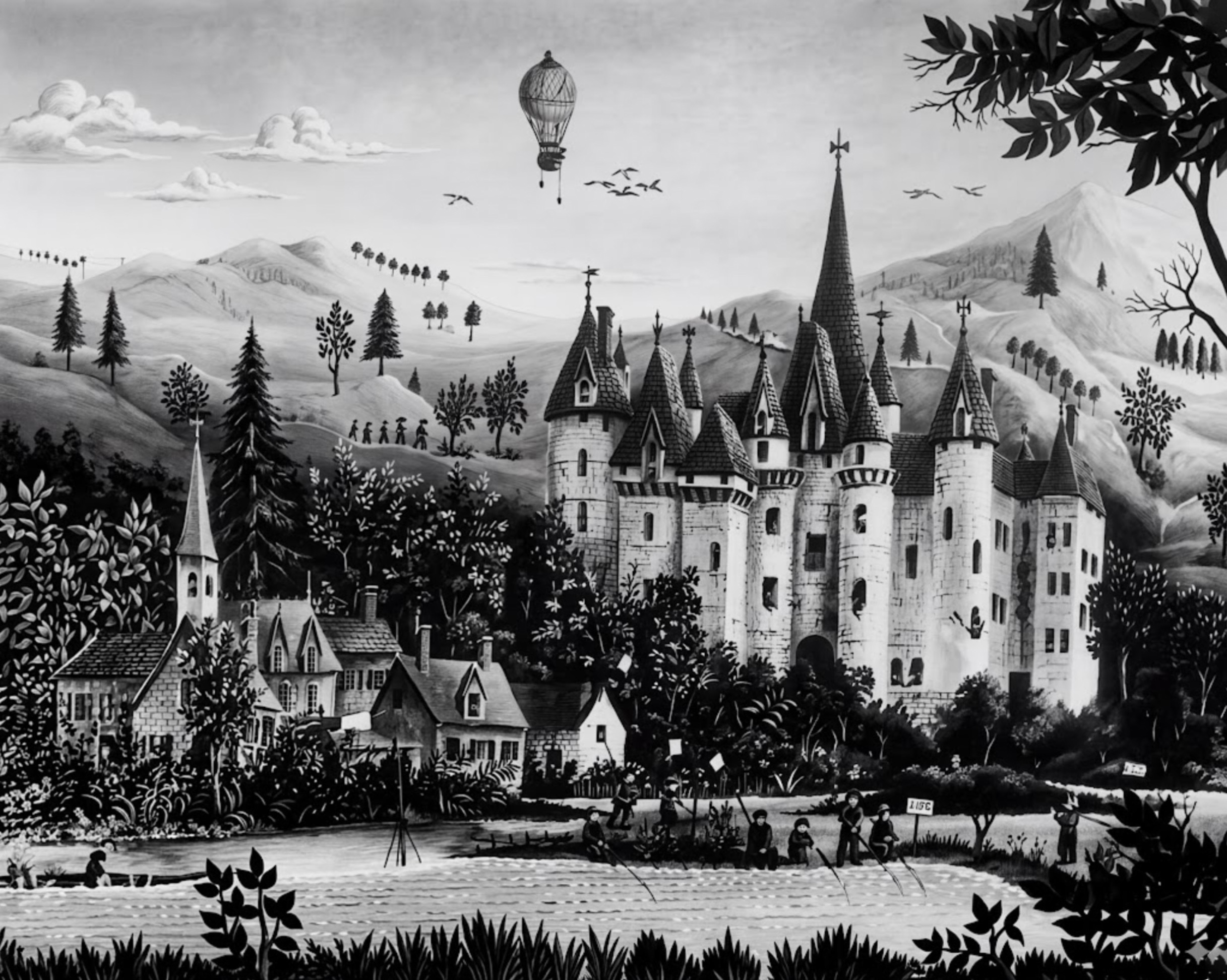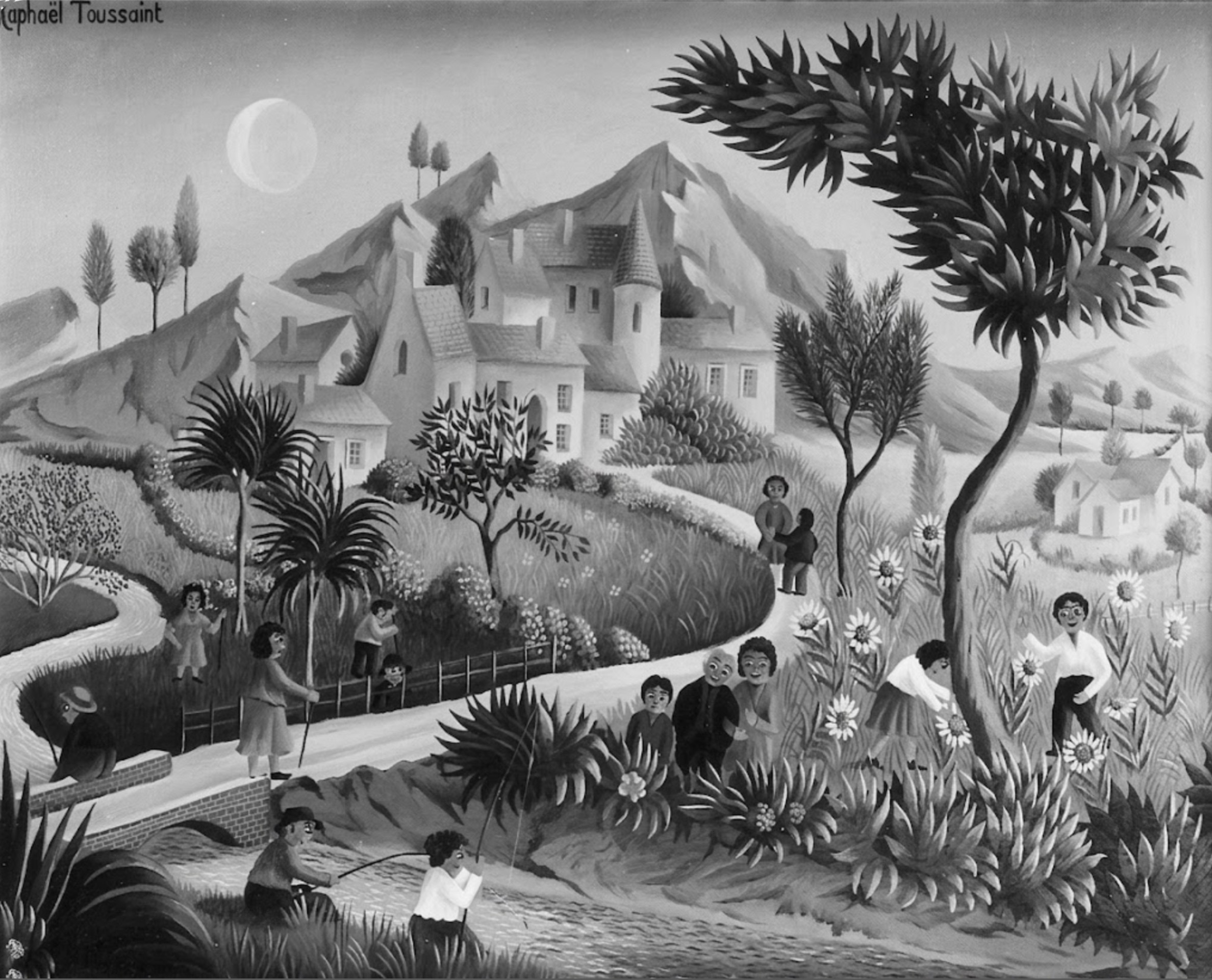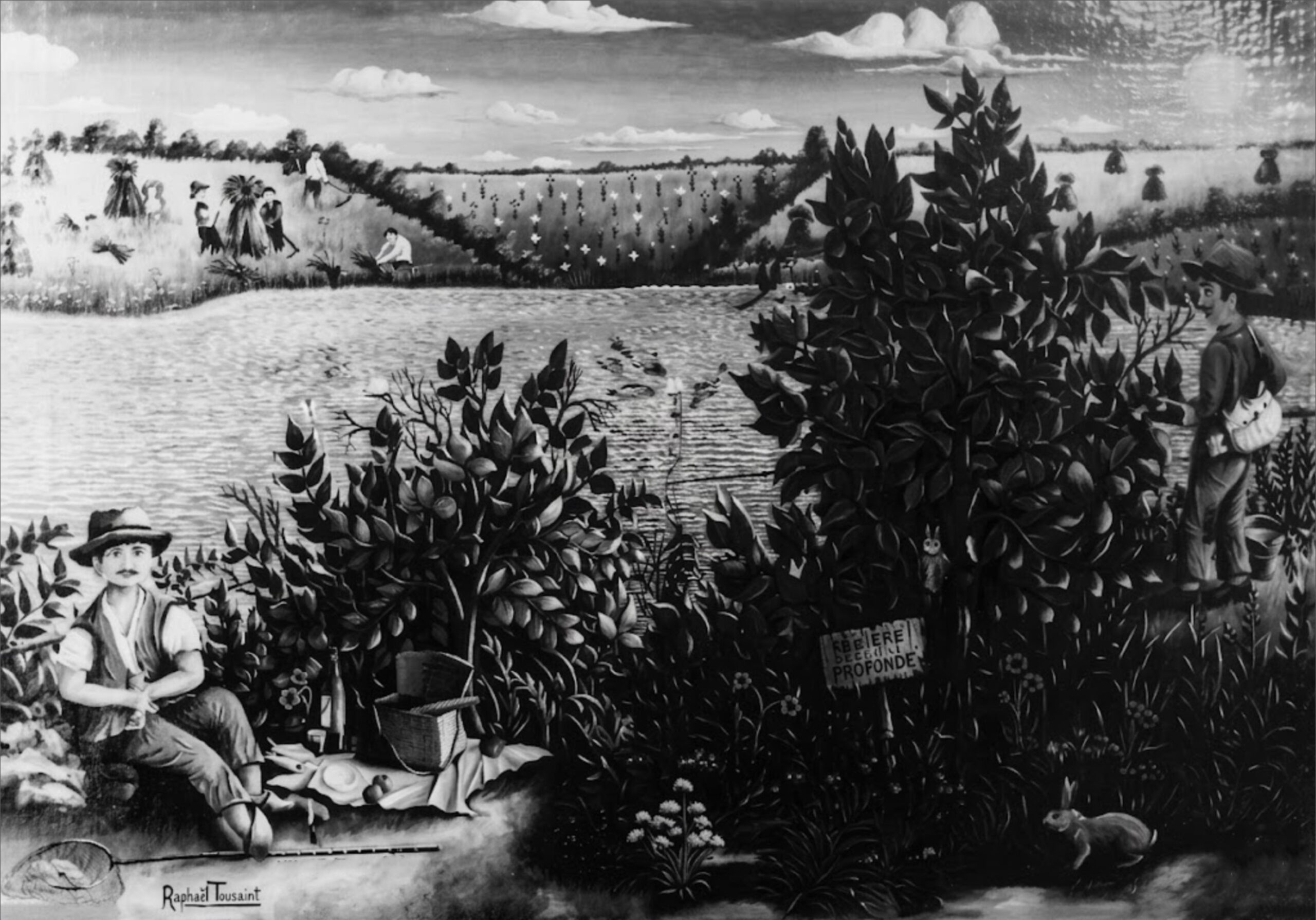 (23)- La partie de pêche : hsb format 24×35, daté 1968. Vendu par la galerie Jannel, Montmartre Paris.