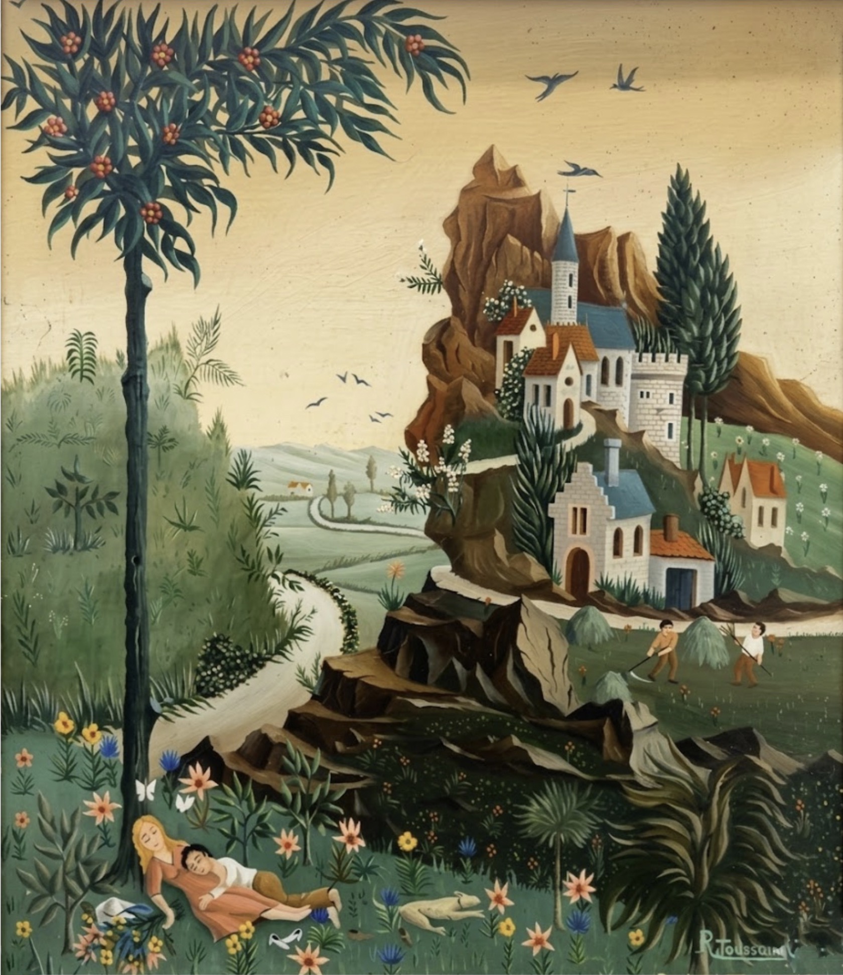 (9)- La Sieste – hsb de format 65×50 cm. Vendu par la galerie René Robin.