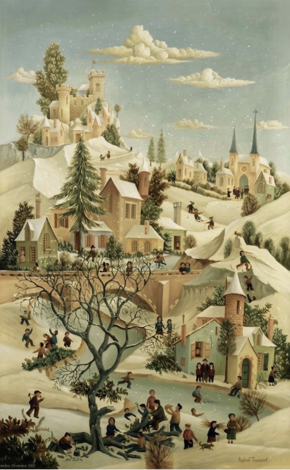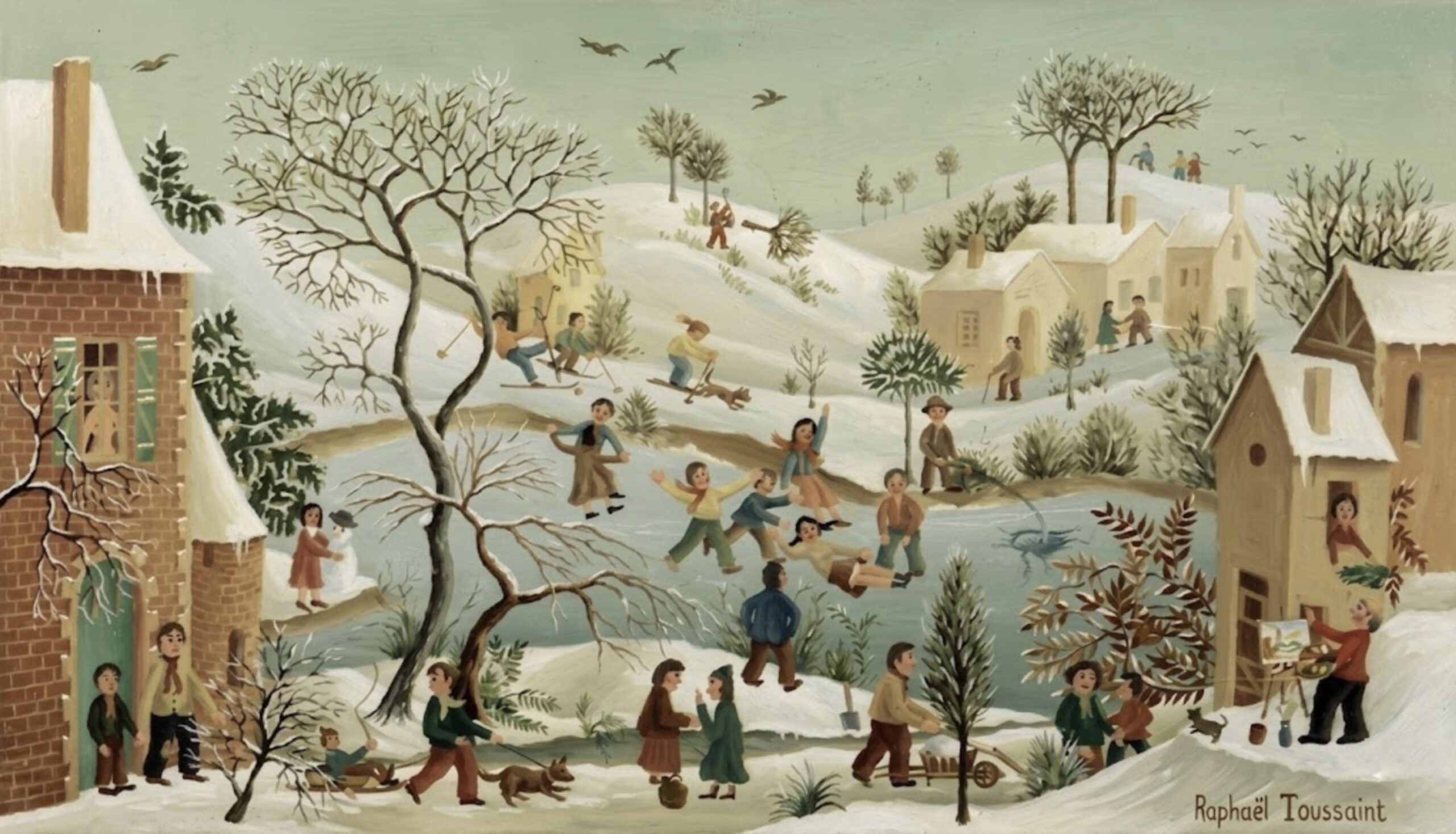 (H.B-38)- Le Village sous la neige – Raphaël Toussaint – Peinture 1969